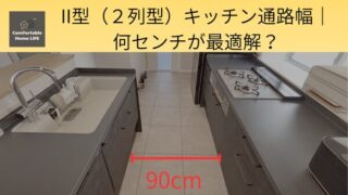 2型キッチン(2列型キッチン)を採用する際に悩むポイントとして通路幅があります。最適解は人によって異なりますが、我が家が90cmに決めた理由をお伝えします。