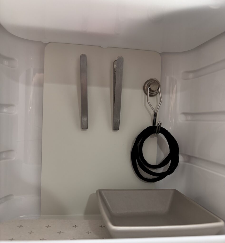 備え付けのステンレスラックは、掃除しやすく工夫して作られている気はするのですが、それでも外して洗うのが少々面倒に感じます。