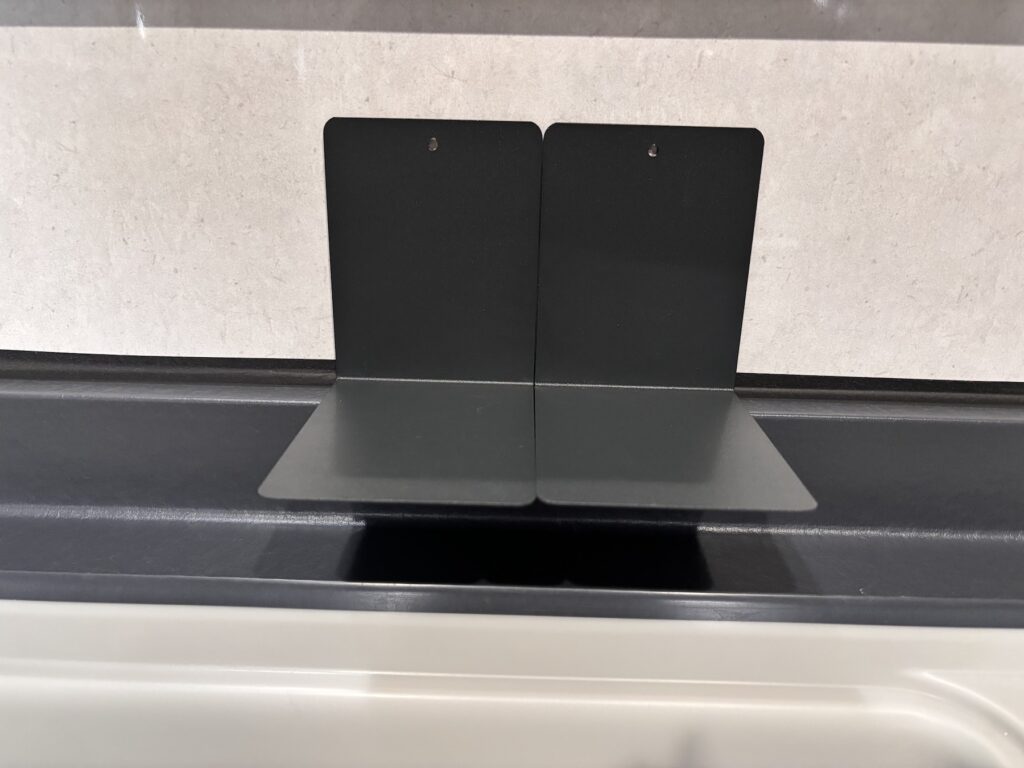 ただ、撤去したくても洗剤を置く場所がなくて出来ずにいました。そこで次の写真のように100均ブックエンドを使ってオートディスペンサーを浮かせてとても快適になりました!