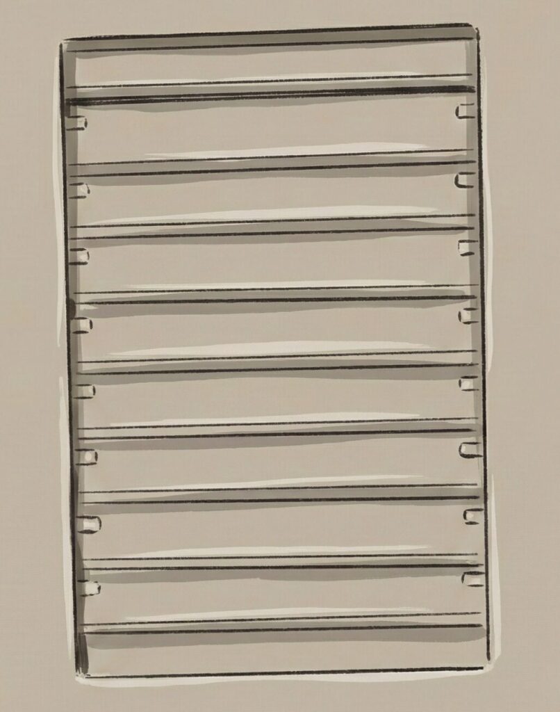 同じく玄関横の鉄の壁ですが、なぜかルーバーのような開口部がついています。購入時点では上からの塗装で固まっていて開けることはできませんでしたが、これもまた手を翳すとスースーと空気が通っていることが分かります。