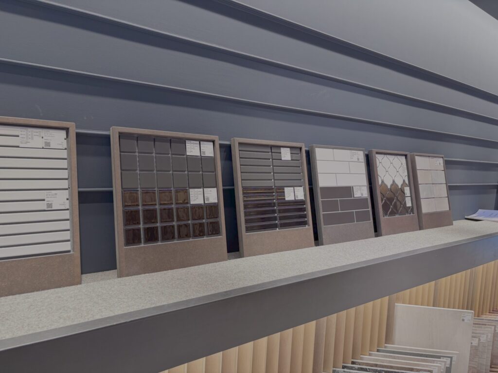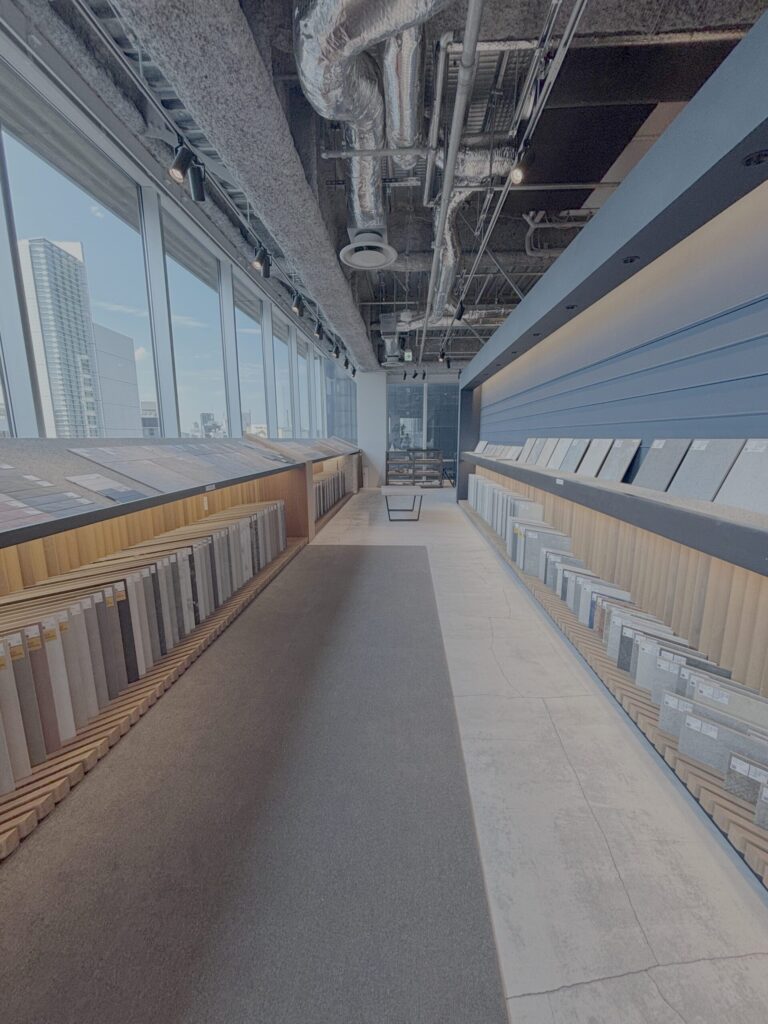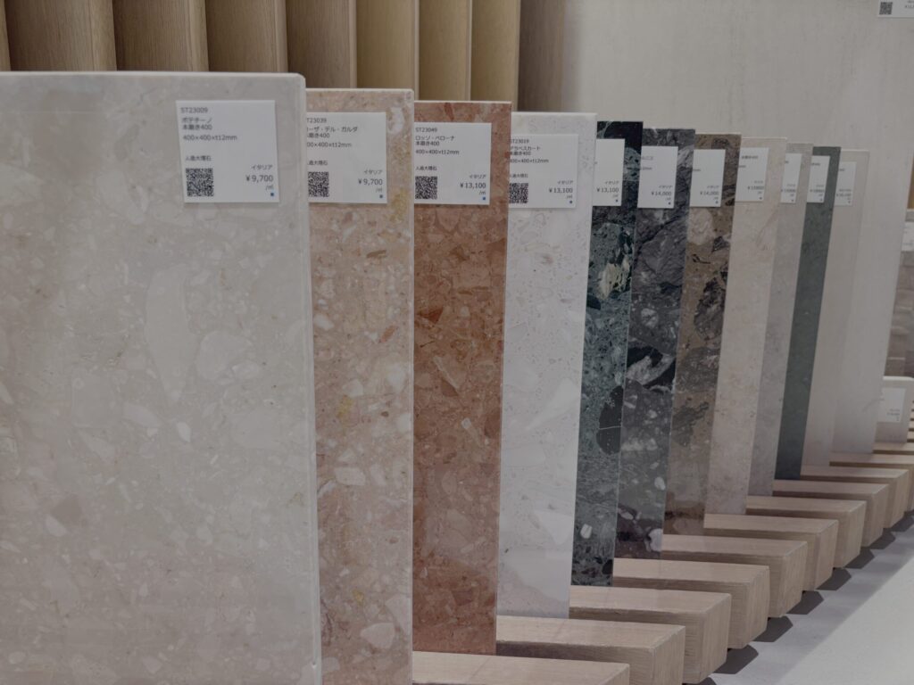 その他にもフロアタイルやフローリング、天然石のタイルなどが美しく展示されていて、みているだけでも楽しいです。