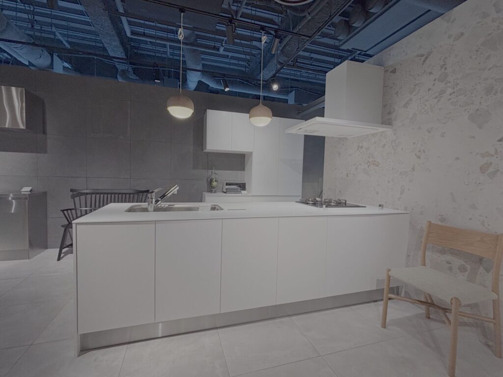 7階の受付からすでにおしゃれ感が漂っていて、まずは素敵なキッチンが出迎えてくれます。空間を贅沢に使って展示されているのでキッチンがとても映えています。展示数もかなり多かったですが、残念ながら写真をあまり撮っていませんでした。