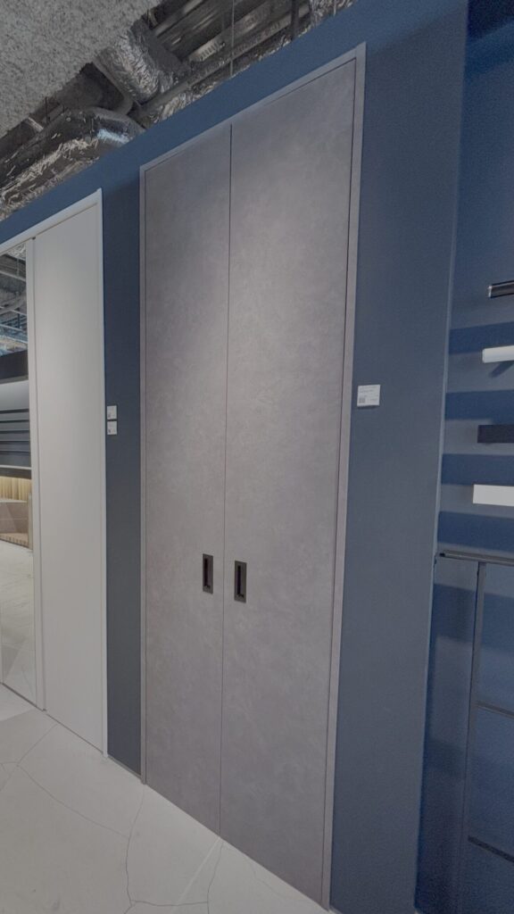 ドアの展示はそれほど多くなかった印象ですが、素材感と採用予定の色を確認することができました。モルタル色はイメージ通りも色だったので一安心しました。