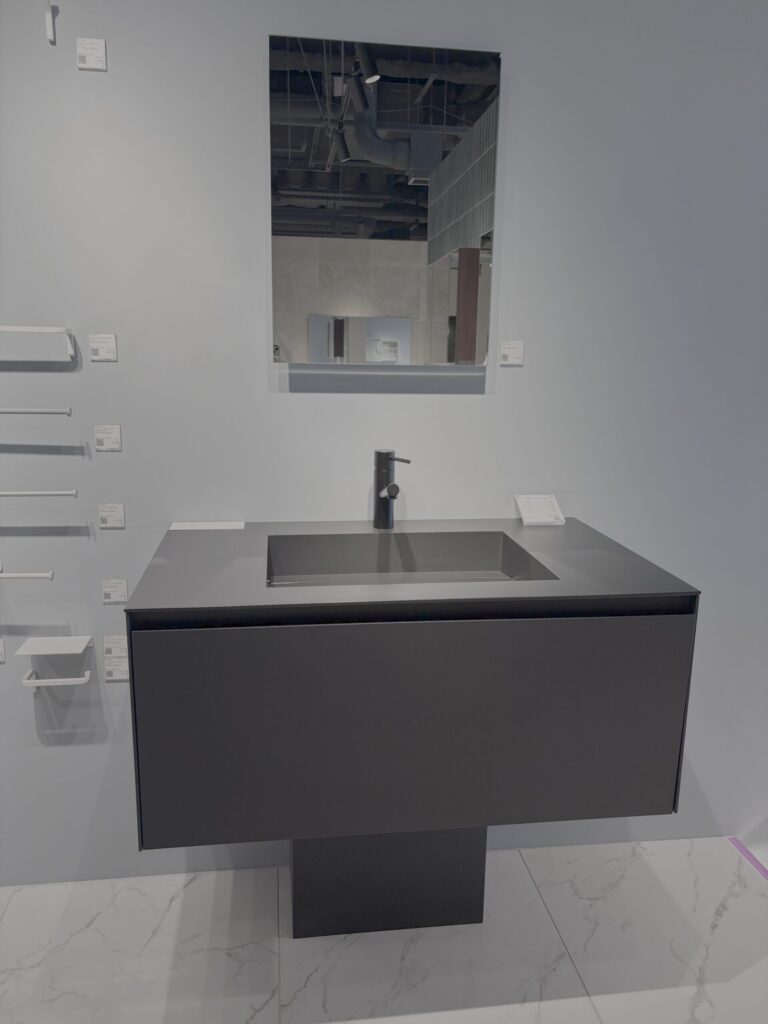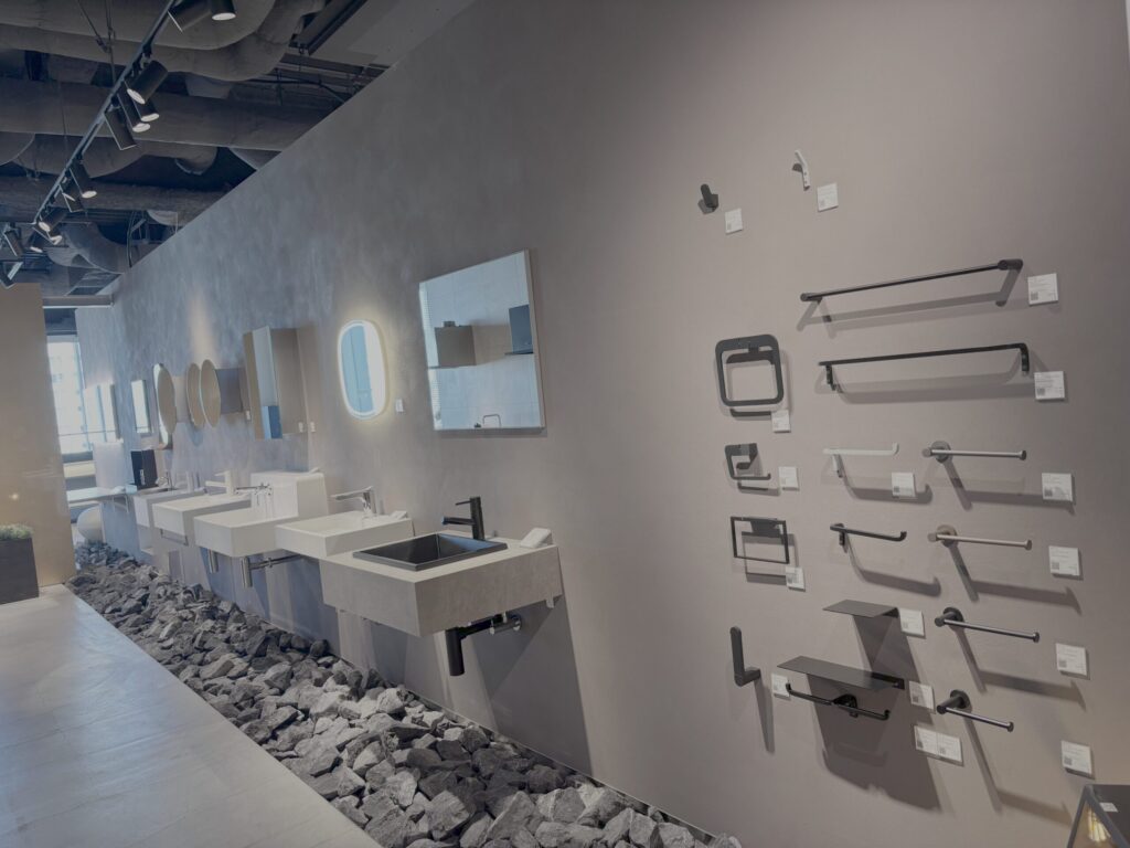 この製品に関してはショールーム内のキッチンや洗面台の展示の一部に使われていて、ピッタラのみを展示するコーナーのようなものはなく、商品を探すのに少し時間がかかりました。